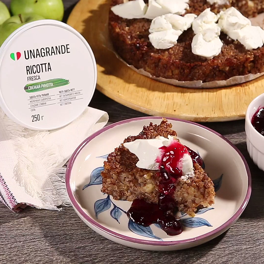По горячей запеканке распределите рикотту и подайте с вареньем.